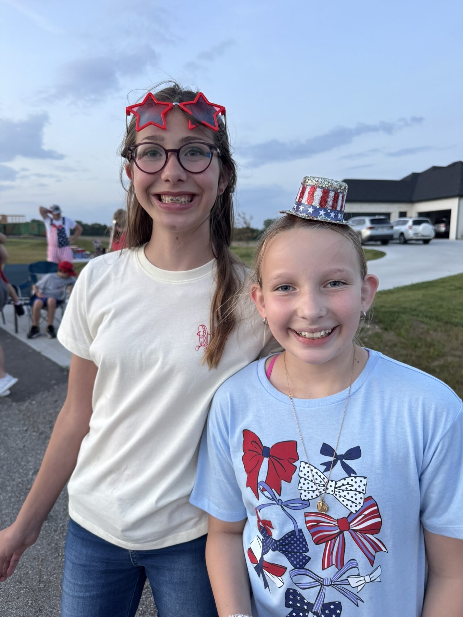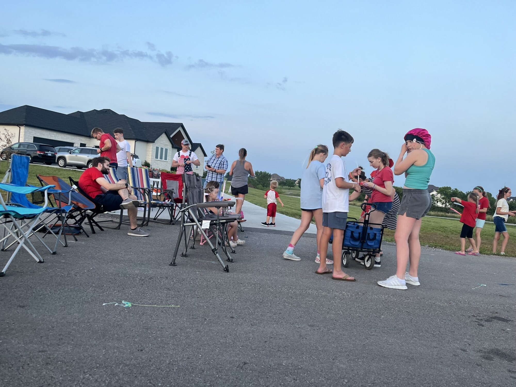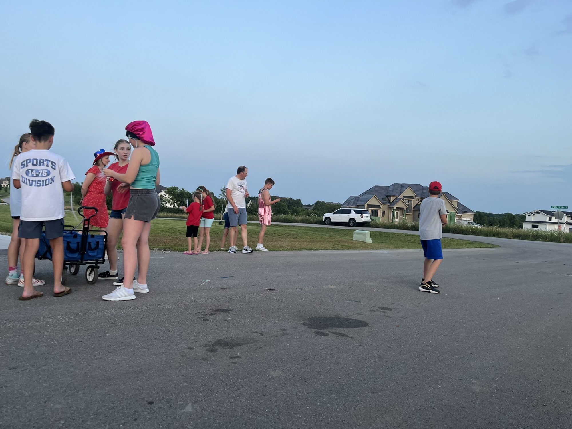 The city of Olathe doesn’t allow fireworks. People still do, but it limits the fun a bit. That’s why we loved going to Nebraska and having a huge firework display and doing our own right from Grandpa’s drive way. Ever since Grandma and Grandpa Terry moved to Olathe we have been anticipating a July 4th celebration at our new house! Our house is not considered inside city limits so we can light off whatever we want. Last year we lit of fireworks on the road but we didn’t have a house yet. This year we had the house!
