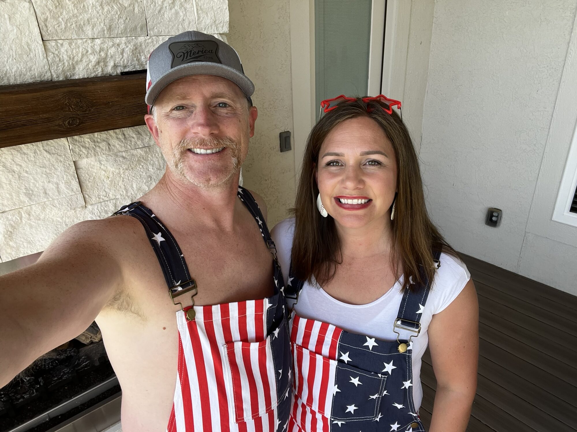 Way back in January or February, Ryan found a fourth of July outfit that he ordered for me and him to wear on the 4th. He was pretty excited about it. It was overalls with the flag on it. He wanted to be festive and over the top. A few weeks before the 4th Matthew sent me a link on his phone and asked if I would help him order an outfit he wanted to wear for the 4th. It was the same overalls! Ryan was delighted, he thought it was hilarious and was very excited. When the day arrived Ryan shaved his beard and left a gross mustache and they both decided to go shirtless to make it as red-neck as they could. It was pretty funny. We went to the firework booth to get our fireworks and there was a teenage girl there wearing the same outfit. She looked pretty embarrassed that we were all wearing the same outfit she was. We had a BBQ lunch at our house and lots of Ryan’s family, some of Lauren’s, and a few friends of ours came. Fourth of July has always been one of our favorite holidays, we did it in Nebraska for years and then had to tone it down when Roger and Rhonda moved here until we had a place we could light fireworks off again. The kids love the cousin time and always look forward to it. I don’t know how much longer it will be like we are used to but it was a fun time this year!
