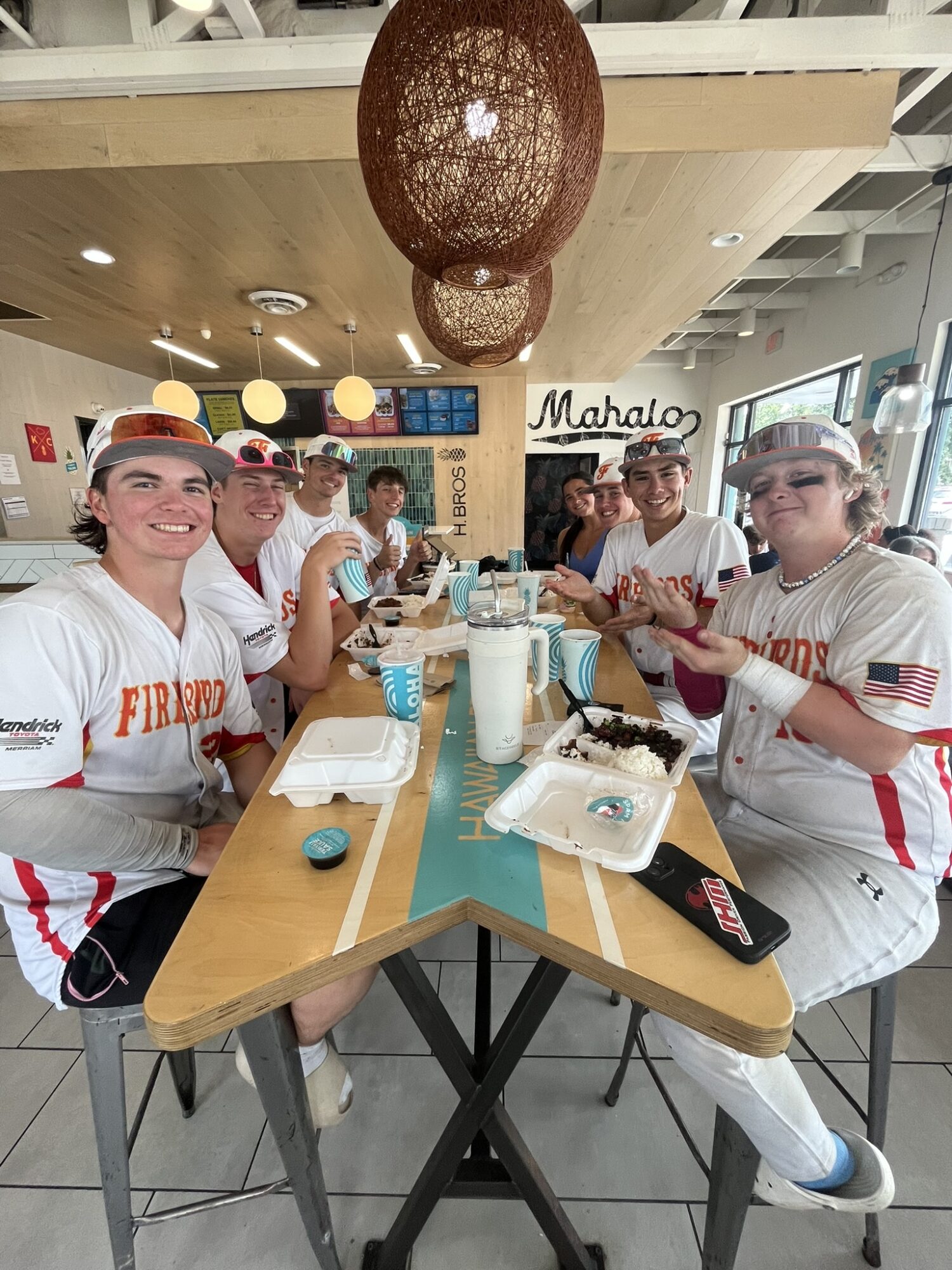 Last team dinner at Hawaiian BrosThis picture is missing Jimmy Adams, he is the head coach but missed the last tournament because they were in Canada.